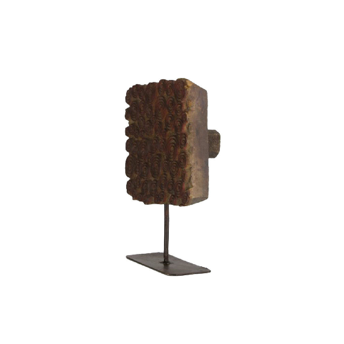 Rzeźba wykonana z drzewa z recyklingu i metalu.