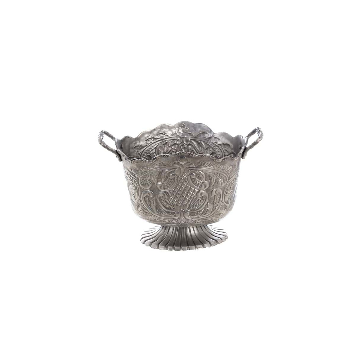 Przepiękne naczynie w kolorze starego srebra, zdobione licznymi ornamentami to idealna dekoracja do wyrafinowanego wnętrza.
