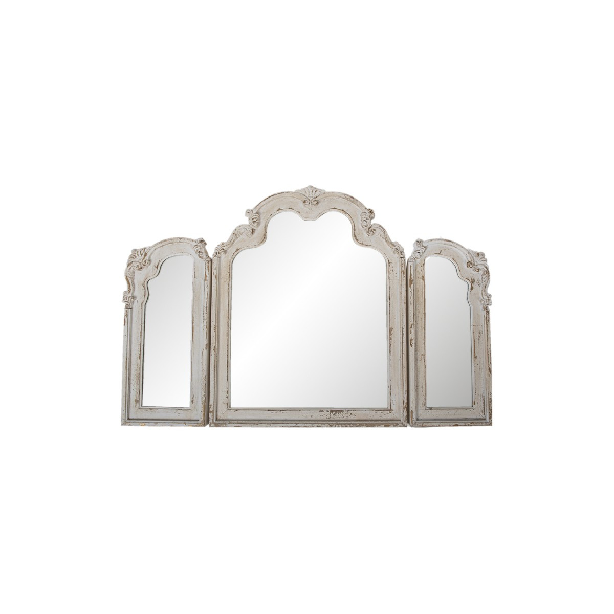 Kolor biały Materiał: drewno/szkło Kształt: prostokąt Styl: brokant Waga: 10,76 kg Długość: 122,00 cm Szerokość: 3,00 cm Wysokość: 84,00 cm Rozmiar: 122x3x84 cm