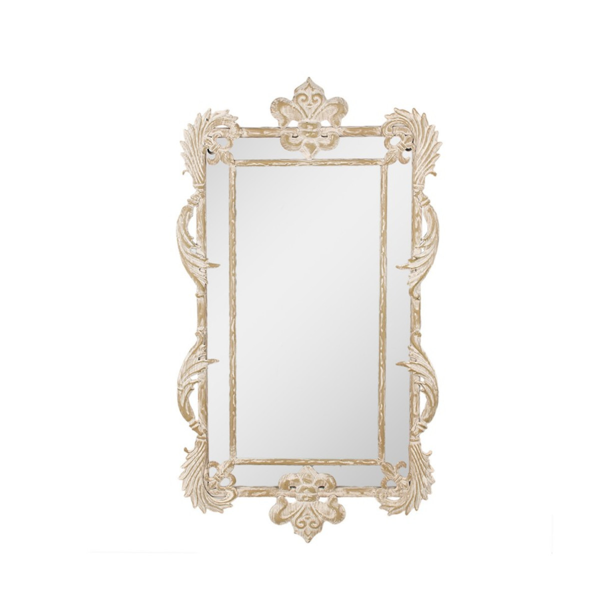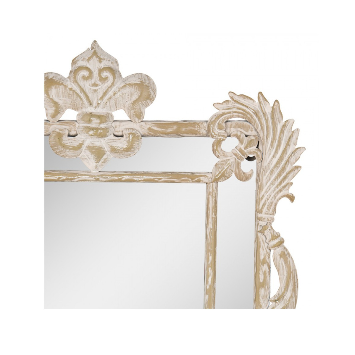 Dekoracyjne lustro ścienne w kolorze beżowym z motywem kwiatowym.