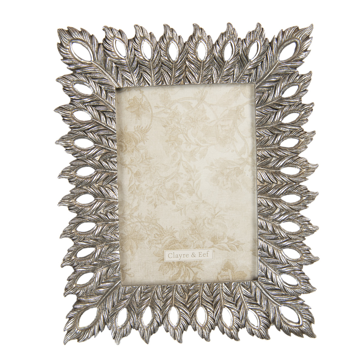 Ramka srebrna z motywem piór pawia. Wykonana z poly resi.