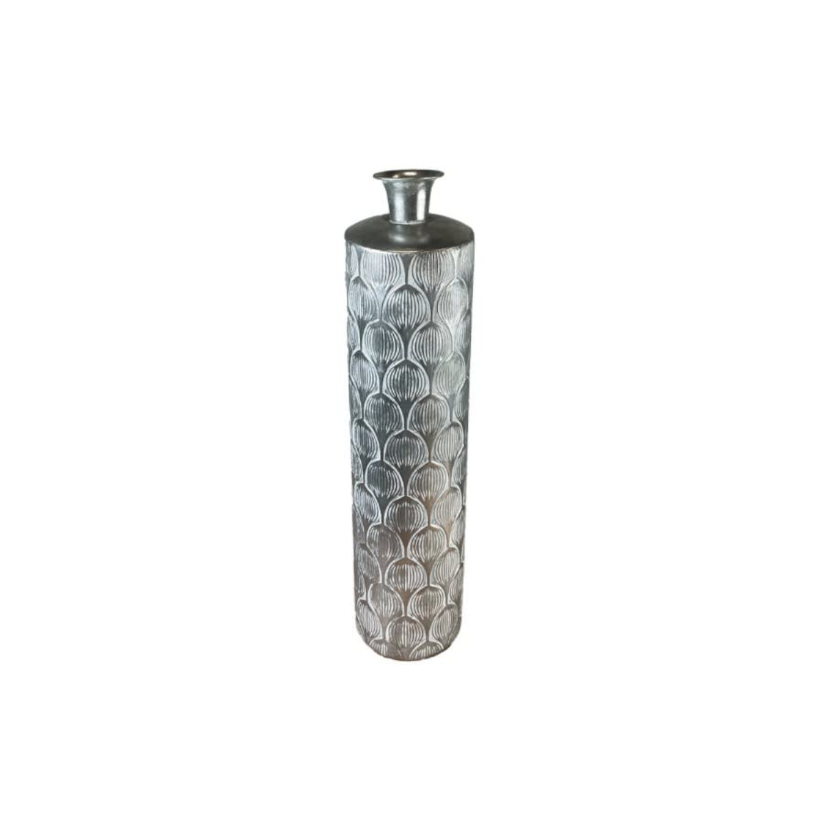 Wazon wykonany z metalu, pokryty kolorem stare srebro.