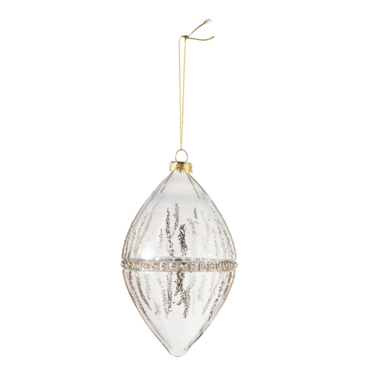Urocza bombka wykonana ze szkła posypana brokatem.