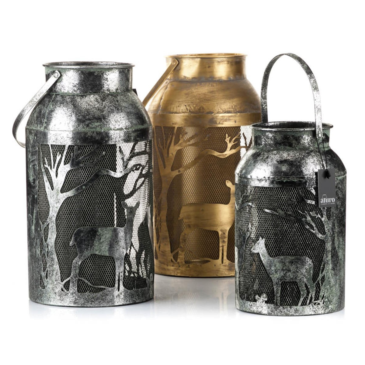 Latarnia metal. TIMBA czarno-srebrna XL_Aluro