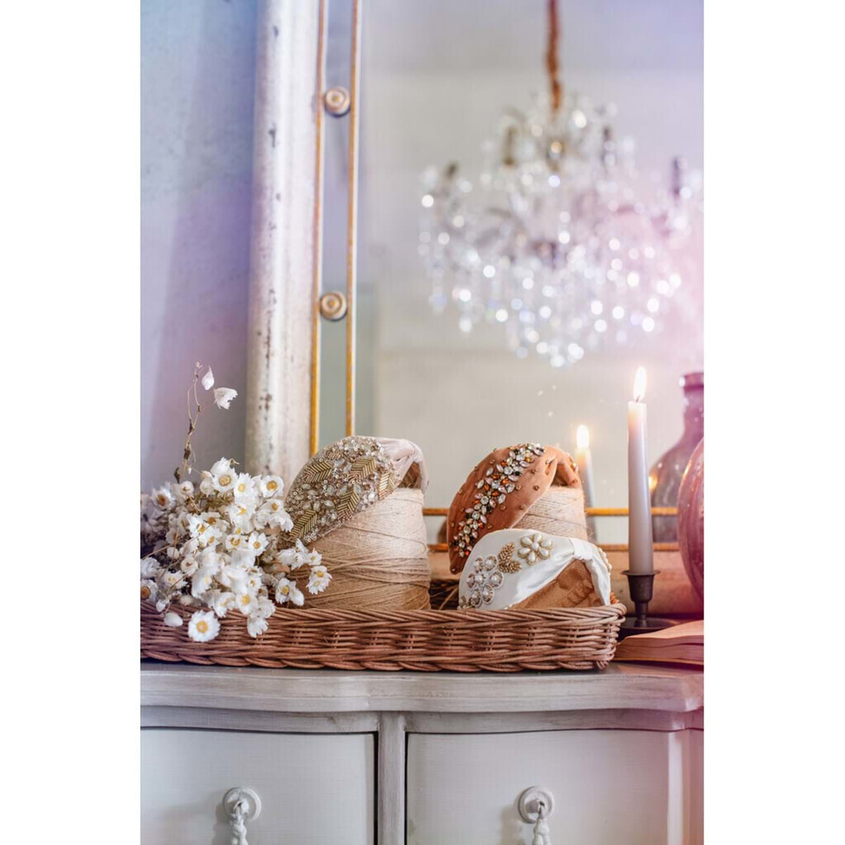 Elegancka aksamitna opaska na głowę, ozdobiona wyrafinowanymi