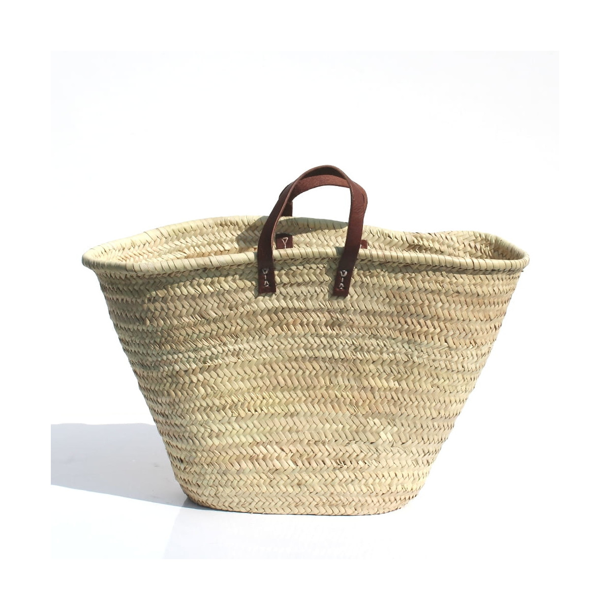 Ręcznie wyplatana torba z liści palmy z rączkami z naturalnej skóry. Praktyczna na zakupy i plażę.