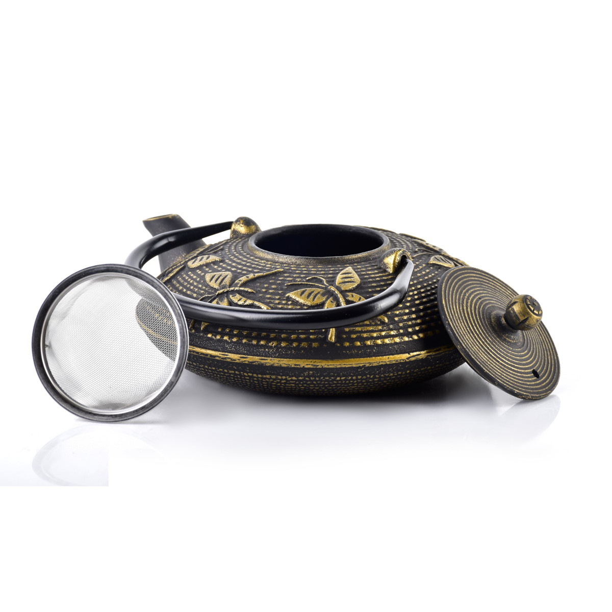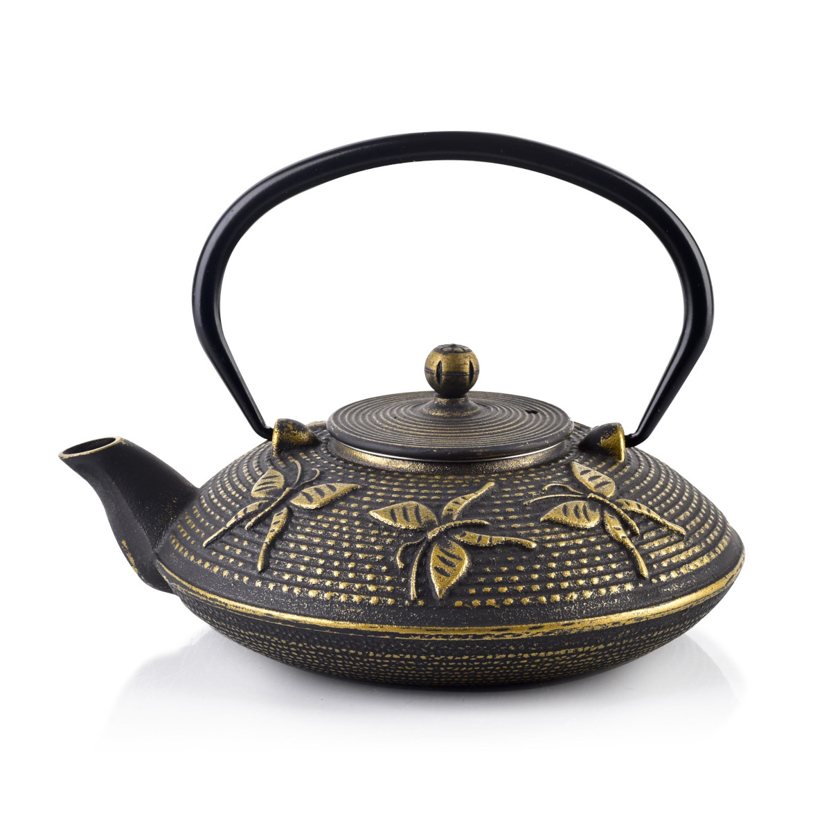 Dzbanek żeliwny został zainspirowany japońskim sposobem parzenia herbaty. Został wykonany z wysokiej jakości żeliwa z wytłaczanymi dekoracyjnymi motylami w kolorze złoto-czarnym. Posiada metalowy