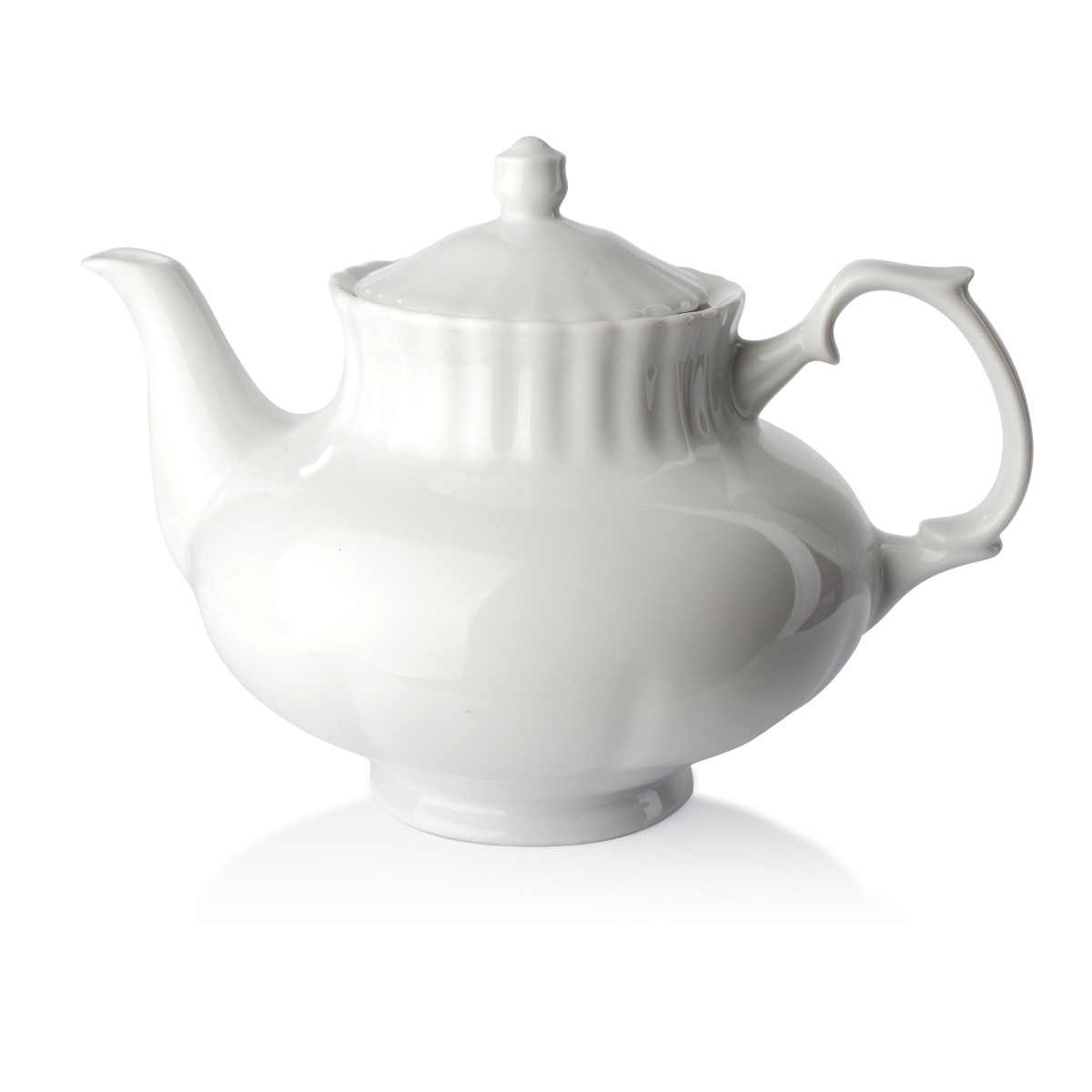 Biały czajnik Iwona polskiej marki Chodzież. Porcelanowy dzbanek do herbaty z pokrywką i wygodną rączką. Nadaje się do zmywarki i mikrofalówki.