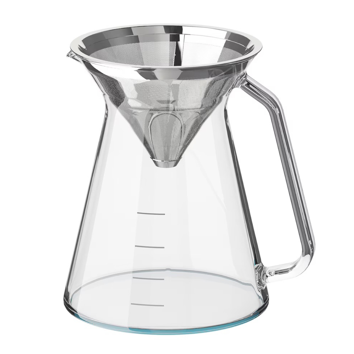 Filtr stalowy wielokrotnego użytku ma małe otwory, które przepuszczają oleje i nadają kawie bogatszy charakter.