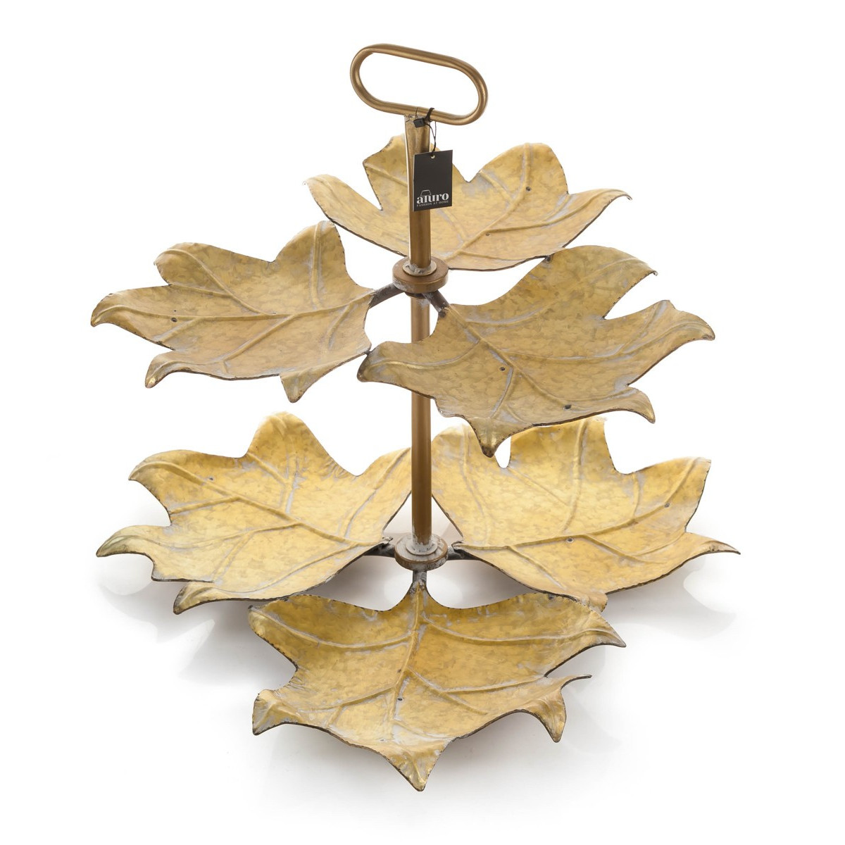 Etażera liście MEISA dwa poziomy-złota_Aluro