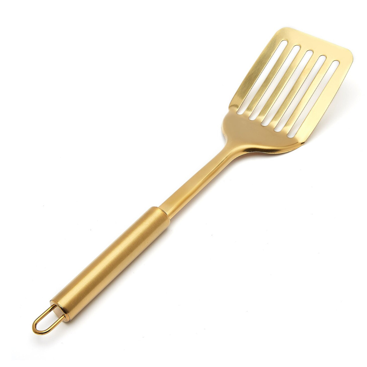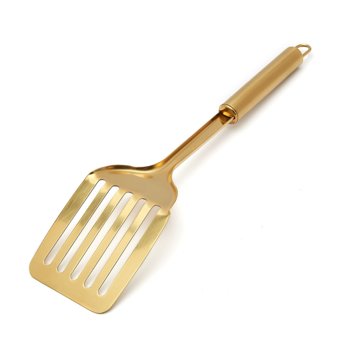 Ażurowana konstrukcja zakończenia i złote wykończenie łopatki kuchennej