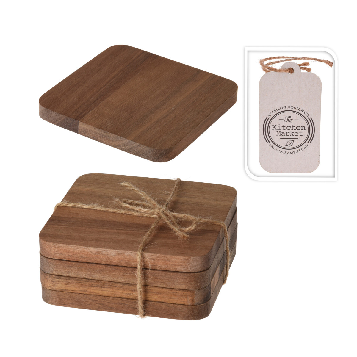 podstawek pod kubki! Wykonane z pięknego drewna akacjowego, te podstawki pod kubki gwarantują, że żadna powierzchnia nie ucierpi od parującego napoju. Idealne dla każdego domowego baru lub blatu kuchennego, podstawki pod kubki mogą towarzyszyć Twoim ulubionym filiżankom do kawy i filiżankom do herbaty, aby zapewnić zabawny i unikalny wygląd. Nie tylko nadają one elegancki wygląd stołom, blatom i innym powierzchniom w Twojej przestrzeni, ale także stanowią świetną powierzchnię do umieszczenia mniejszych przedmiotów, takich jak biżuteria i naczynia! Dzięki temu zestawowi 4 podstawek pod kubki możesz unowocześnić każde pomieszczenie - nawet jeśli delektujesz się herbatą lub napojem w podróży. Czy to kubek gorącego kakao, czy lodowata breja, te urocze podstawki pod kubki sprawią, że nic nie zsunie się ze stołu, a napoje pozostaną dłużej ciepłe. Doświadcz funkcjonalnego stylu z przyciągającym wzrok twistem z tymi zabawnymi, ale praktycznymi podstawkami pod kubki z drewna akacjowego już dziś!