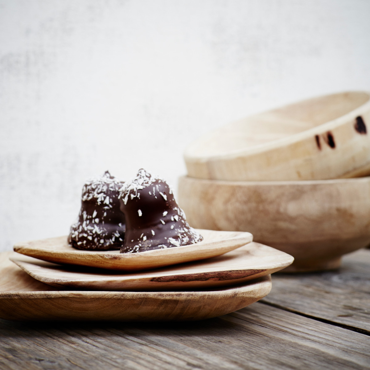 Drewniana miska zabezpieczona olejem, rekomendowane mycie ręczne.