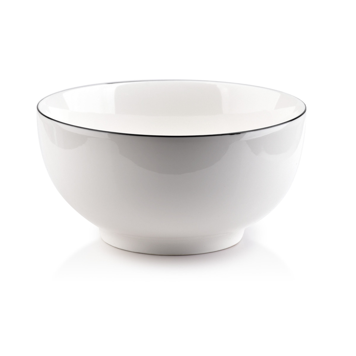 Mała miska, idealna do serwowania przekąsek , bardzo zgrabna.Seria ta wykonana jest z porcelany w kolorze białym z ozdobnym czarnym rantem. Naczynia z tej serii można myć w zmywarce i używać w kuchence mikrofalowej.