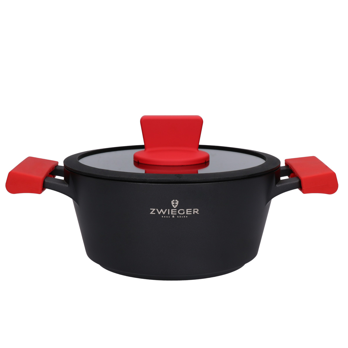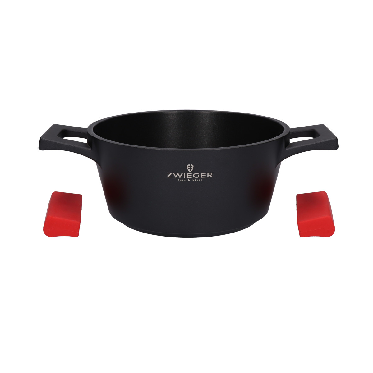 - Możliwość zapiekania w piekarniku do temp. nie przekraczającej 280 st.C (dotyczy garnków 24 cm i 28 cm bez pokrywy) oraz smażenia potraw podobnie jak w każdej patelni marki Zwieger