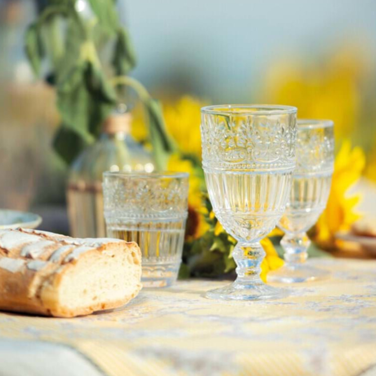 Przepiękne włoskie kieliszki, wysokiej jakości szkło w przecudnej urody zdobieniach.
