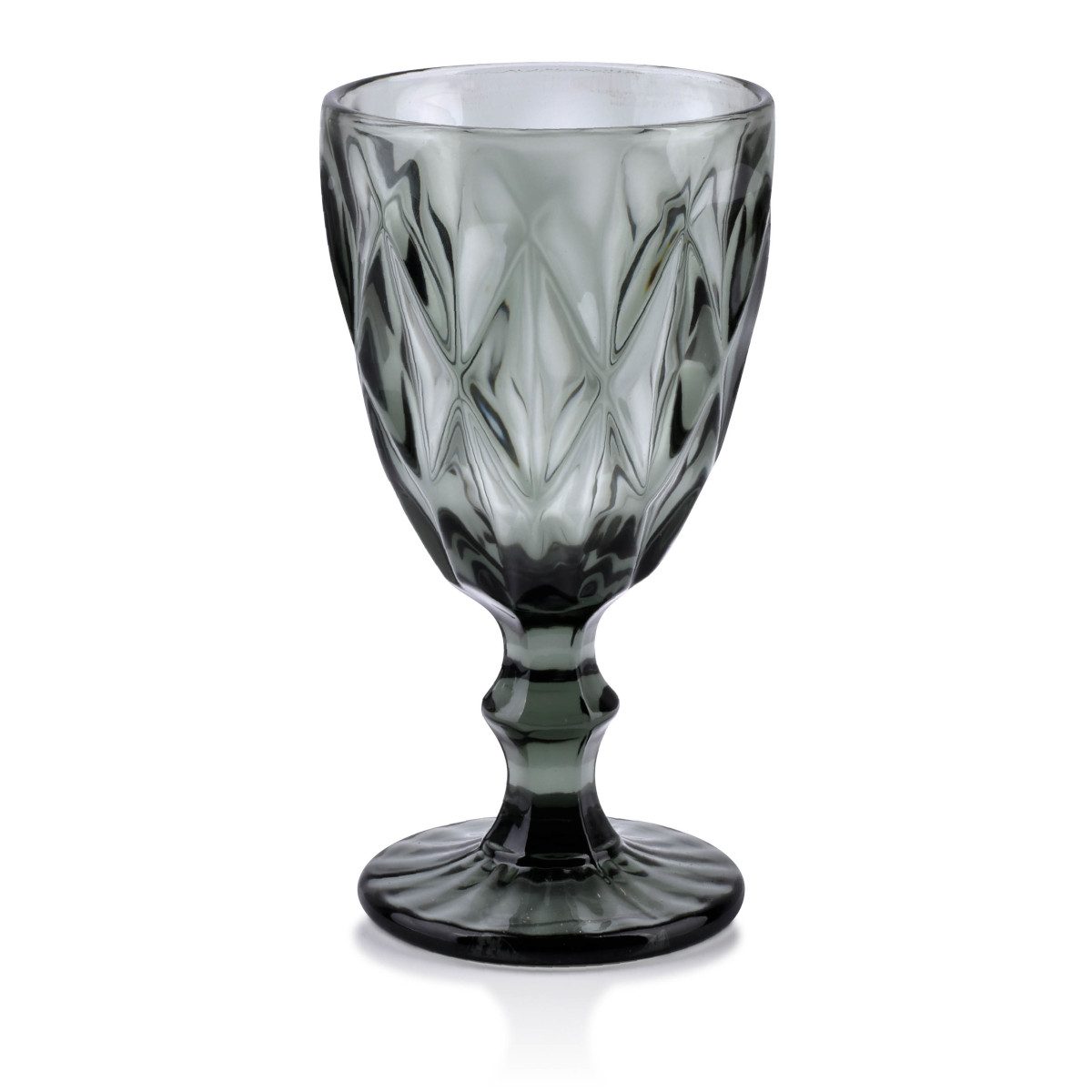 Komplet 6 kieliszków do wina. Kieliszki ze szkła barwionego na szaro, z pięknym tłoczeniem.