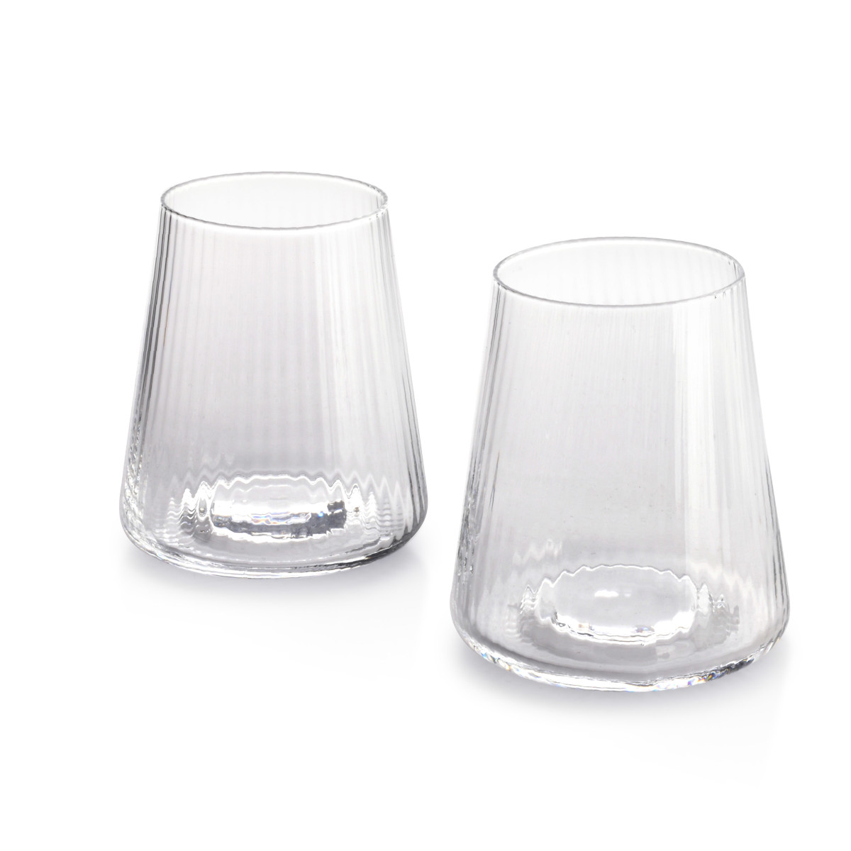 Komplet dwóch szklanek, wykonane są ze szkła. Dzięki złotemu wykończeniu staje się wyjątkowym dodatkiem do wnętrz. Pięknie prezentuje się w witrynie, jak i na stole. Idealne rozwiązanie na prezent. Można myć w zmywarce.