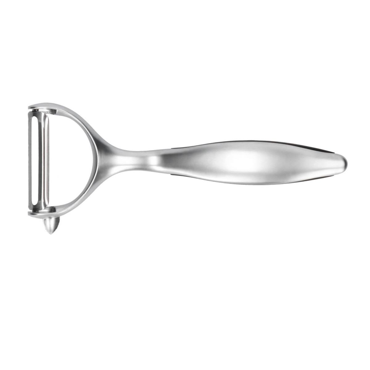 Poręczna i wygodna w użyciu obieraczka z solidnym ostrzem ze stali nierdzewnej to wysokiej jakości, uniwersalne narzędzie kuchenne. Dzięki wyprofilowanej rączce, wzbogaconej po obu stronach w gumową powłokę, produkt pewnie leży w dłoni, co usprawnia i przyspiesza obieranie
