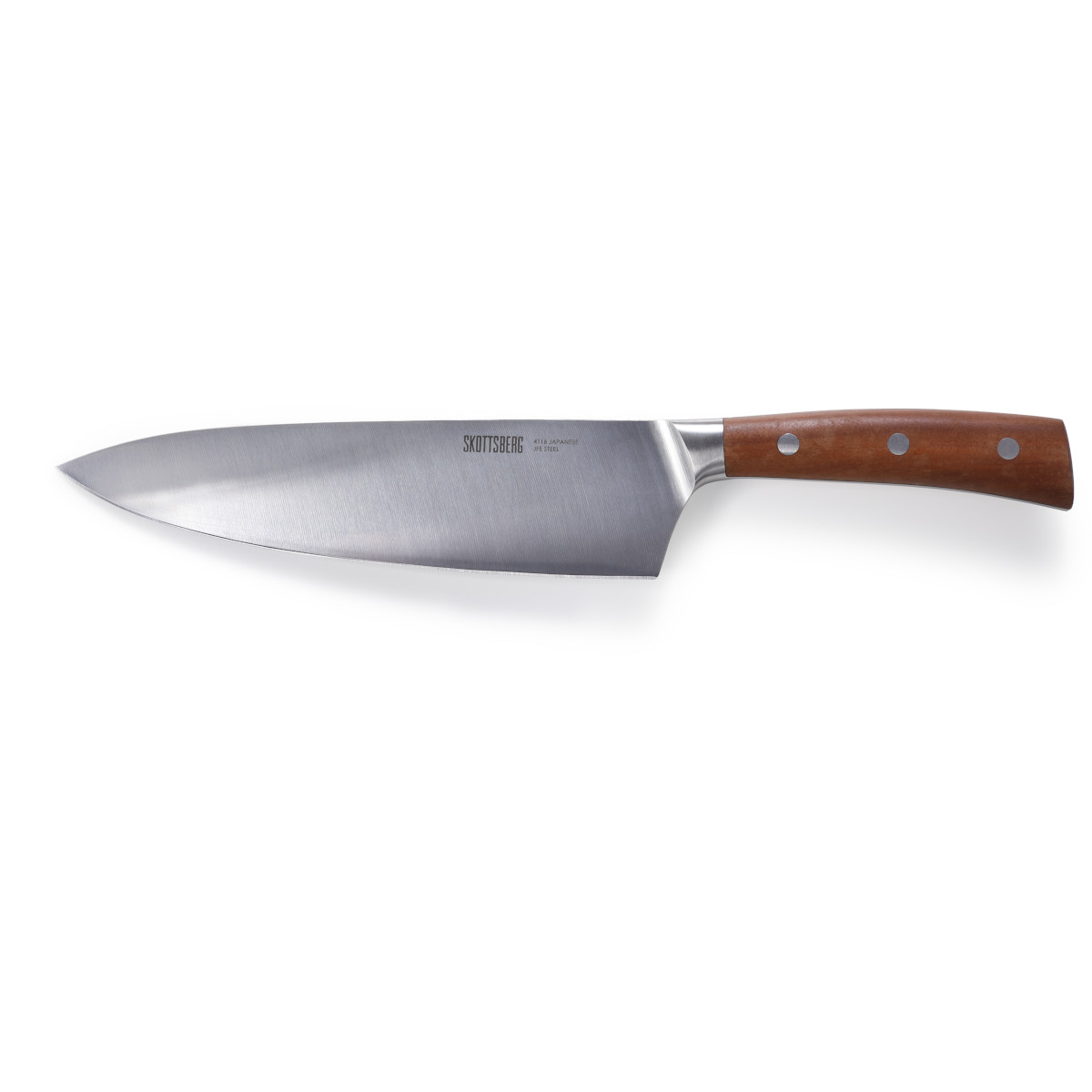 Niezwykle ostry nóż szefa kuchni: cięcie z łatwością i przyjemnością! Żadne zadanie związane z krojeniem nie jest niemożliwe dla tego noża szefa kuchni. Wykonany jest z japońskiej stali, ponieważ znaleźliśmy tam najlepszego producenta stali dla tego konkretnego metalu. Kąt ostrzenia ostrza wynosi 28 stopni. Nasz nóż szefa kuchni ma 20-centymetrowe ostrze, jest uniwersalny .