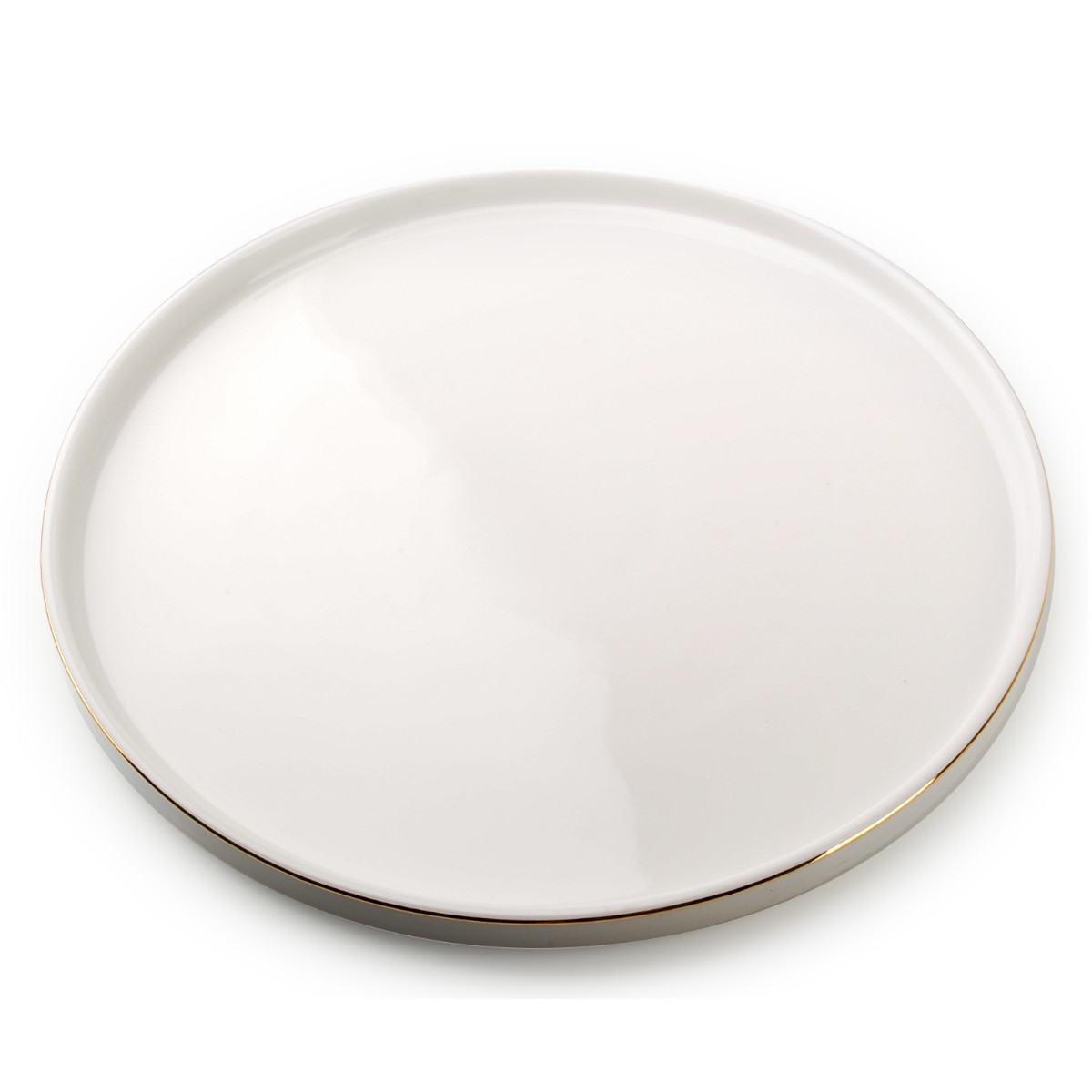 Talerz deserowy z kolekcji GRACE . Wyróżnia go złota obwódka oraz prosty rant. Nie nadaje się do zmywarki. Wymiary: średnica 20,3cm wysokość 1,4cm