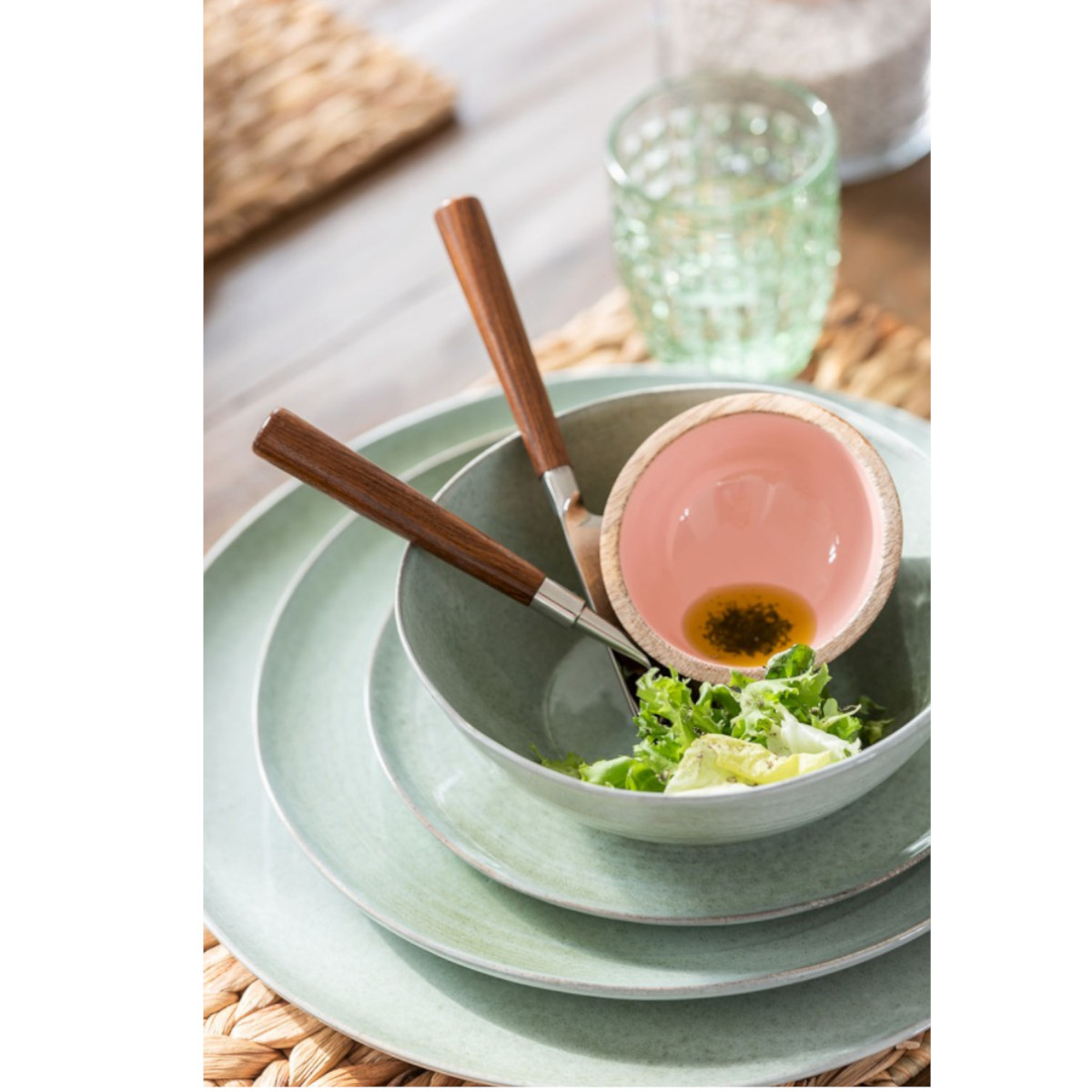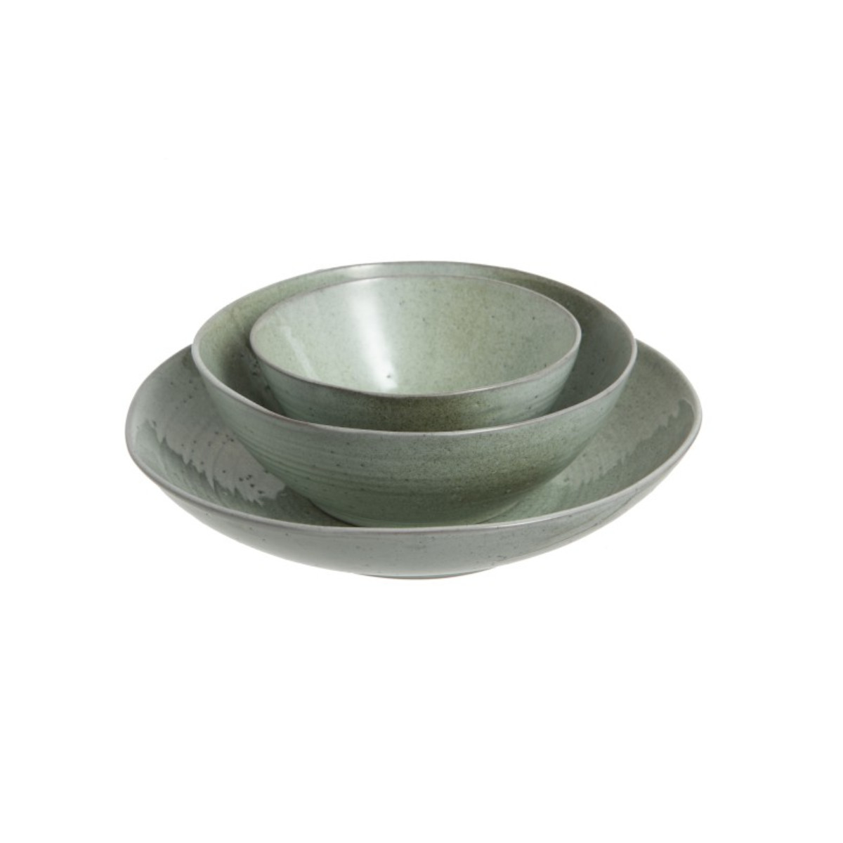 Głęboki talerz wykonany z wypalanej gliny, pokryty szkliwem spożywczym.