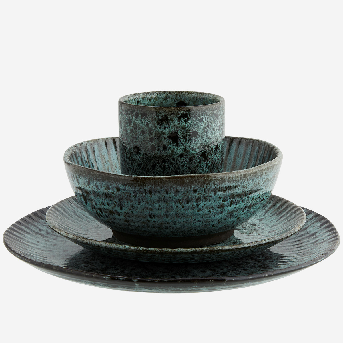 Niepowtarzalny wzór, ręczne wykonanie. Talerz w kolorze zieleni i czerni.Wykonany z kamionki. Można myć w zmywarce.