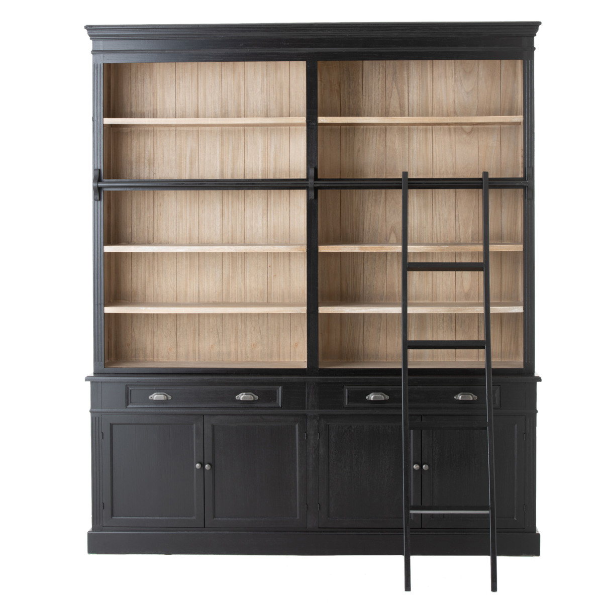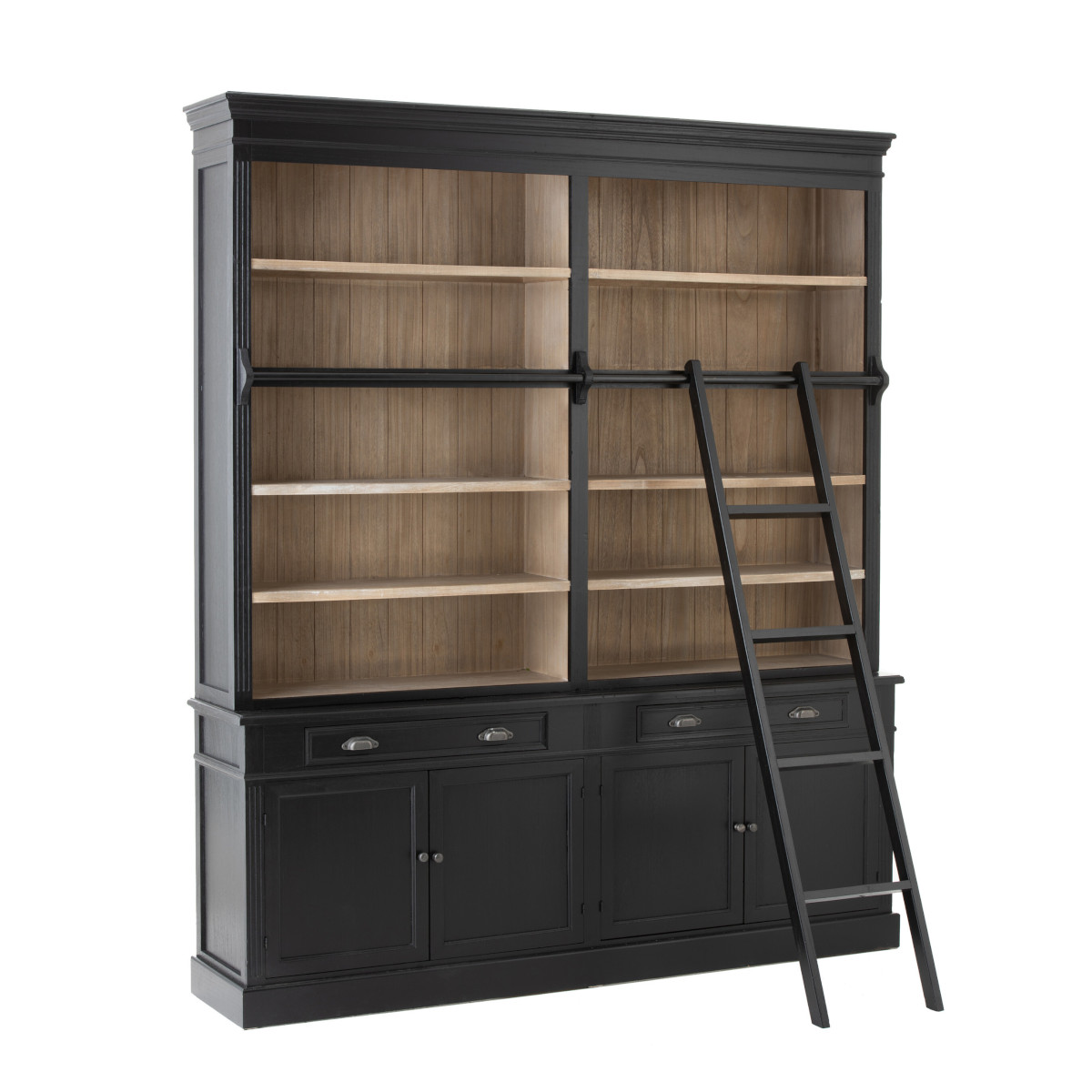 Szafka Biblioteczna+Drabina Drewniana Czarny/Naturalny