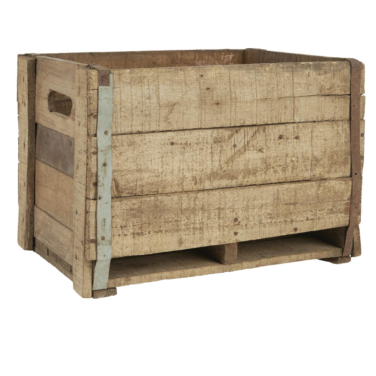 Drewniana skrzynia wykorzystywana do przechowywania butelek w Indiach.