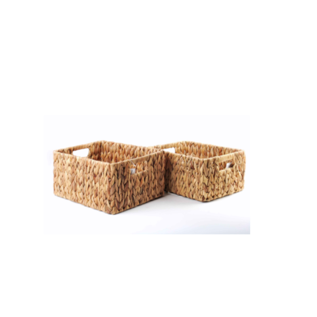 Komplet 2 prostokątnych koszy wyplatanych z hiacyntu wodnego z serii AMPARO . Stanowią naturalny element wystroju każdego pomieszczenia.