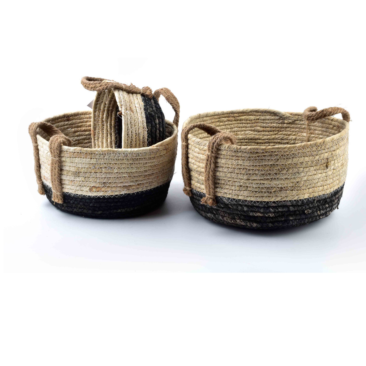 Komplet 3 koszy. Rozmiar; XL: 30CMX30CMXH16CM L: 25CMX25XMXH13.5CM M: 21CMX21CMXH9CM