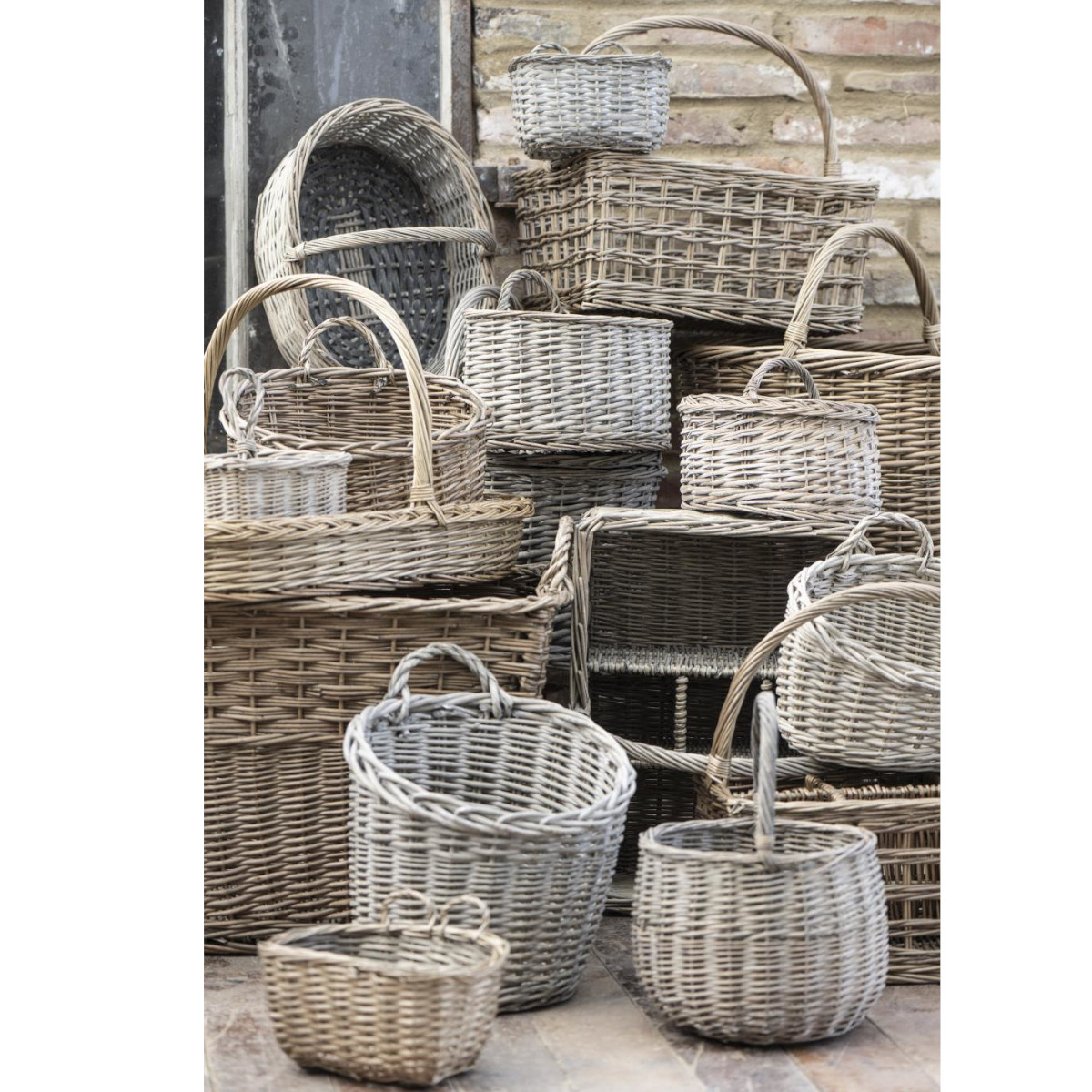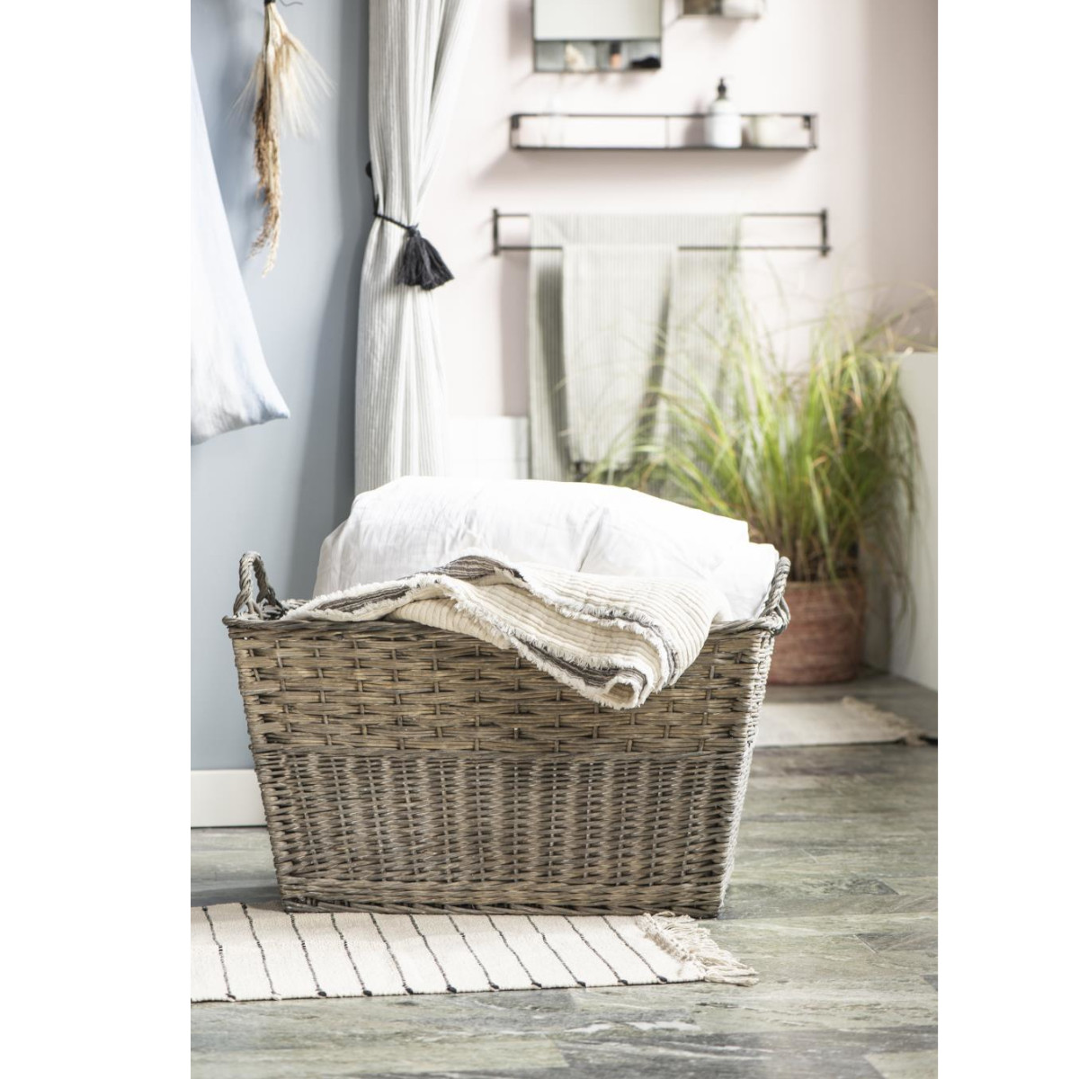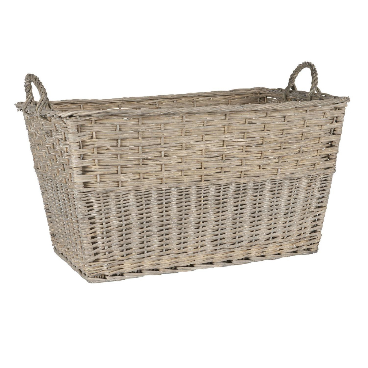 Duży kosz wiklinowy, ręcznie zaplatany.