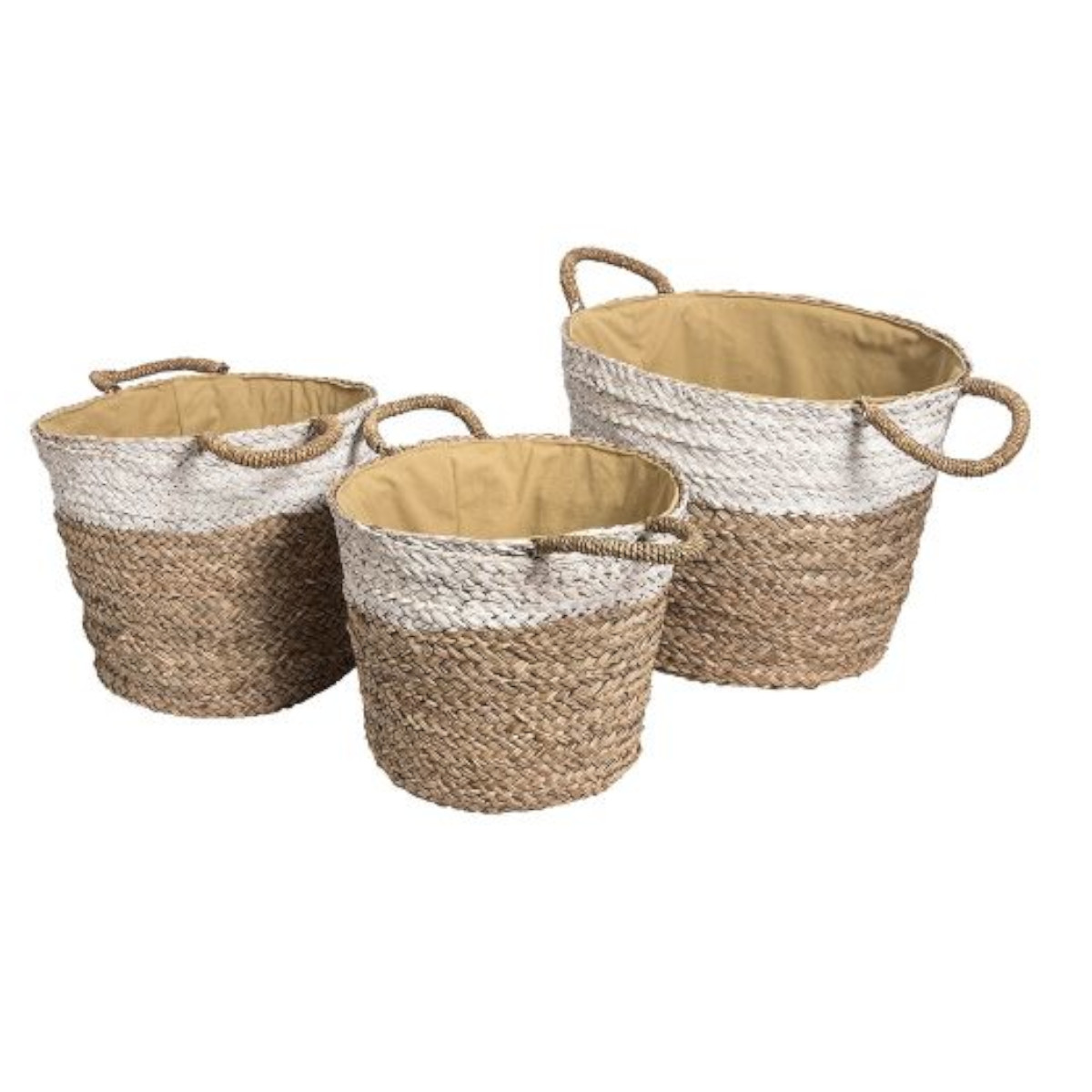 Zestaw 3szt koszy w stylu bocho . Kolor beżowy z białym pasem.