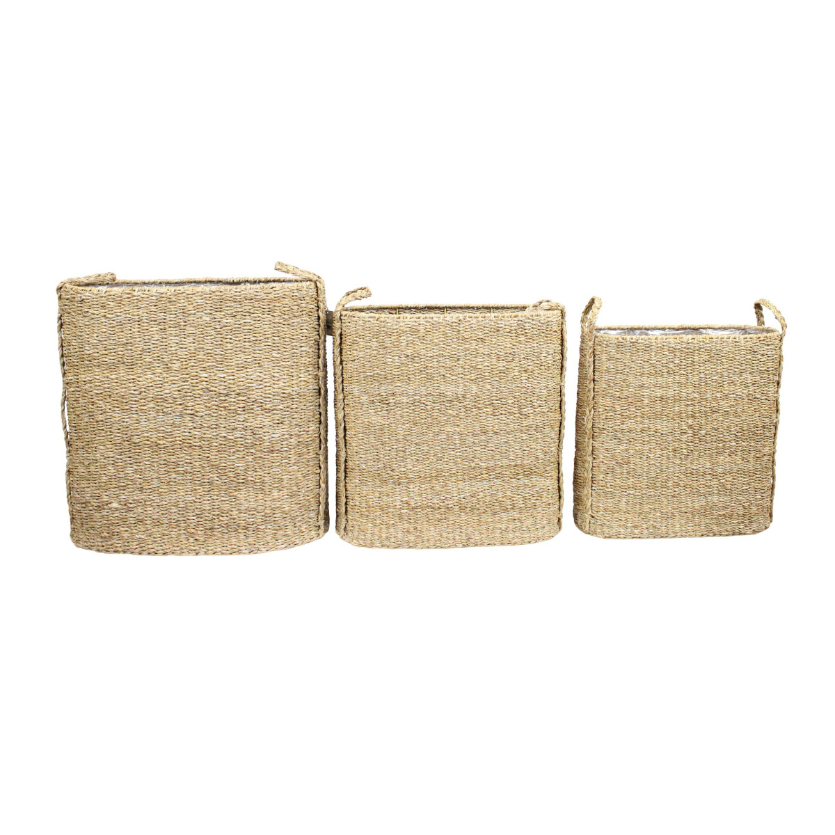 Zestaw trzech koszy, środek pokryty plastikiem.