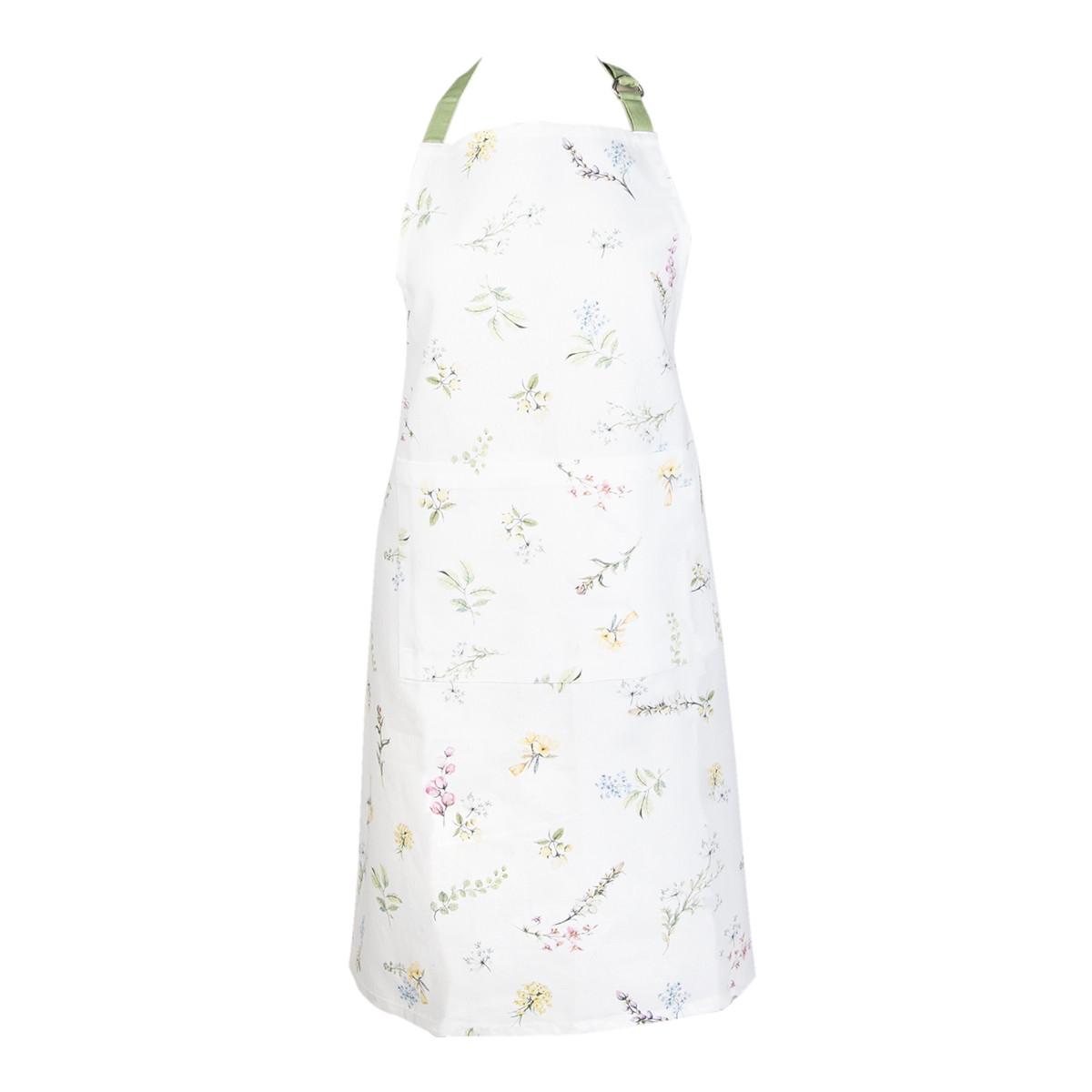 Fartuch wykonany w 100% z bawełny, biały z motywem zieleni.