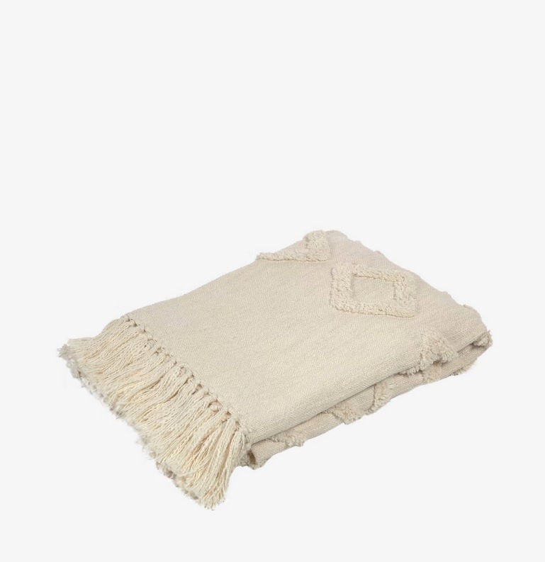 Dotyk jest zmysłem, który z przyjemnością się rozbudza. Dzięki temu bawełnianemu kocowi, dzięki jego różnym fakturom i reliefom. Ponadto jest idealnym uzupełnieniem, aby w łatwy i szybki sposób nadać styl pomieszczeniom takim jak salon czy sypialnia.