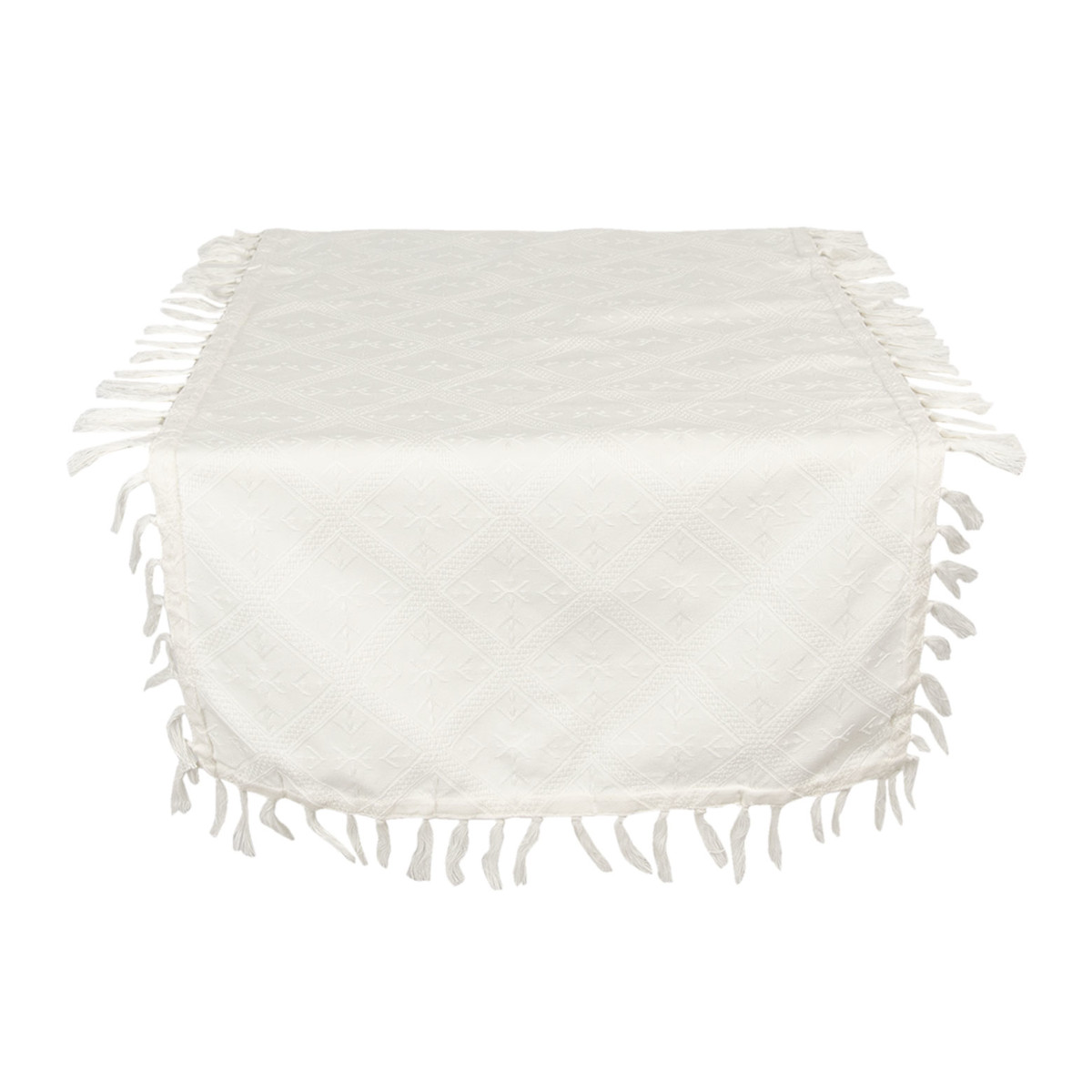 Bieżnik z frędzelkami. Materiał to delikatna bawełna, przepięknie tłoczona.