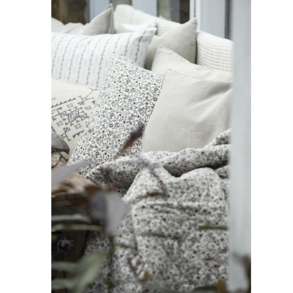 Jeśli lubisz klasyczny wystrój w czerni i bieli, ta poszewka z jasnym tłem i delikatnym skręconym kwiatowym wzorem jest idealnym wyborem na nową poszewkę do Twojej kolekcji. Poszewka wykonana jest jako reprint oryginalnego, indyjskiego wzoru sari, jaki znamy z pięknych, klasycznych strojów indyjskich kobiet.